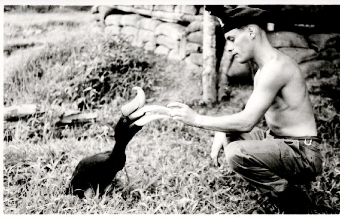 While in Borneo, the 1st Battalion also adopted a Rhinoceros Hornbill bird. The Rhino Hornbill is a large species of forest hornbill that can live up to 35 years in captivity.